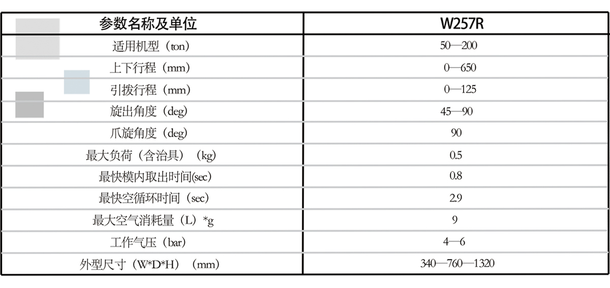 W2系列適用于30-280T的各型臥式射上出成型機的成品及水口取出。上下手臂有單節(jié)式W255R/W257R/W255C及雙截式W258R,上下、引撥、旋出、旋入均采用氣壓驅動,速度快、高效率、經濟實惠型機械手臂。安裝機械可增加產能(10-30%)、降低產品的不良率、保障操作人員的安全性、減少人工、精準控制生產量、減少浪費。